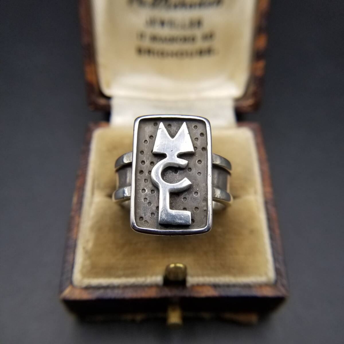 > イニシャルレター MCL レクタングルトップ 925 シルバー ヴィンテージ リング 銀 指輪 大ぶり 個性派 ステートメントジュエリー Y24-D
