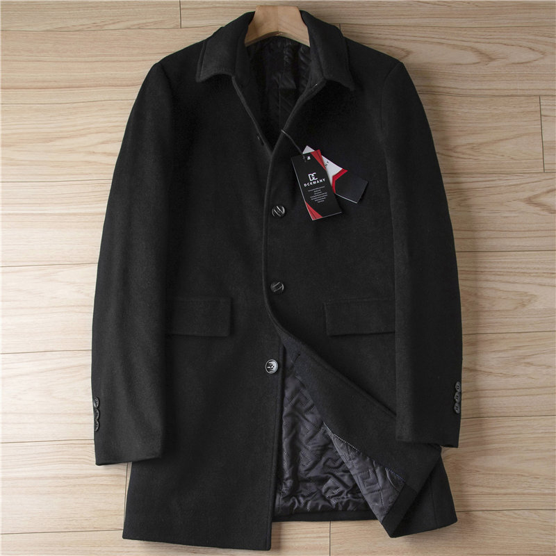 > Y685-M程度 ブラック 新品DCKMANY ウール混 折り襟 チェスターコート ミドル 中綿コート 秋冬 防寒 暖かい フォーマル アウター メンズ