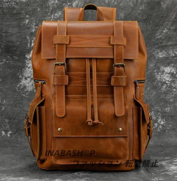 - 品質保証☆ 本革 牛革 リュックサック メンズ バックパック ディパック 大容量 通勤 通学 手染め ヌメ革