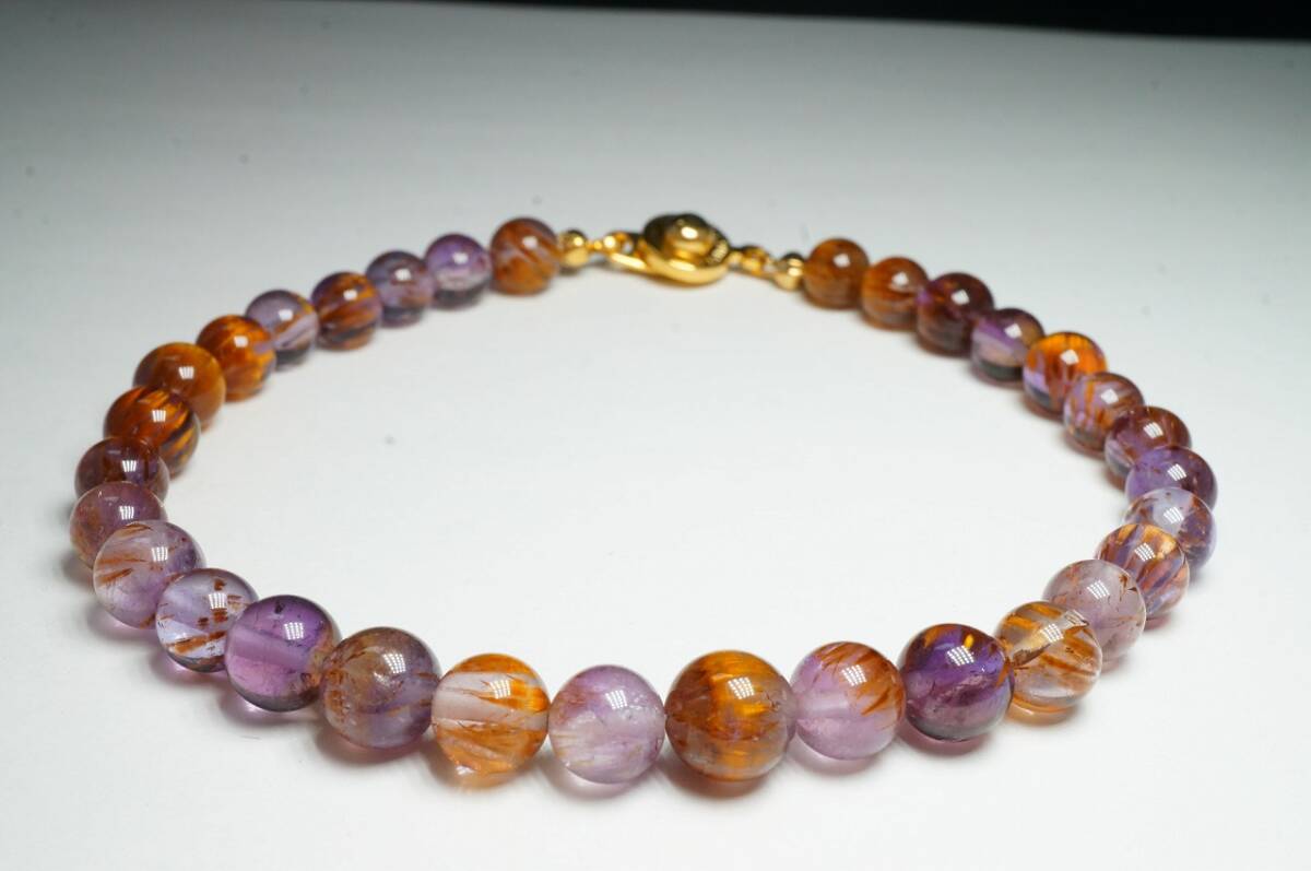 > 【即決限定価格!早い者勝ち】30年前の未使用在庫玉!カコクセナイト&ゲーサイト他 in アメジスト/amethyst /水晶 紫水晶ブレスレット14g