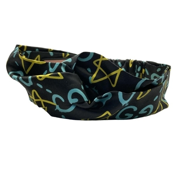 > グッチ GUCCI アクセサリー グッチゴーストプリント シルク 黒×ライトブルー×イエロー ヘアバンド/スター(星) 美品 アクセサリー(他)