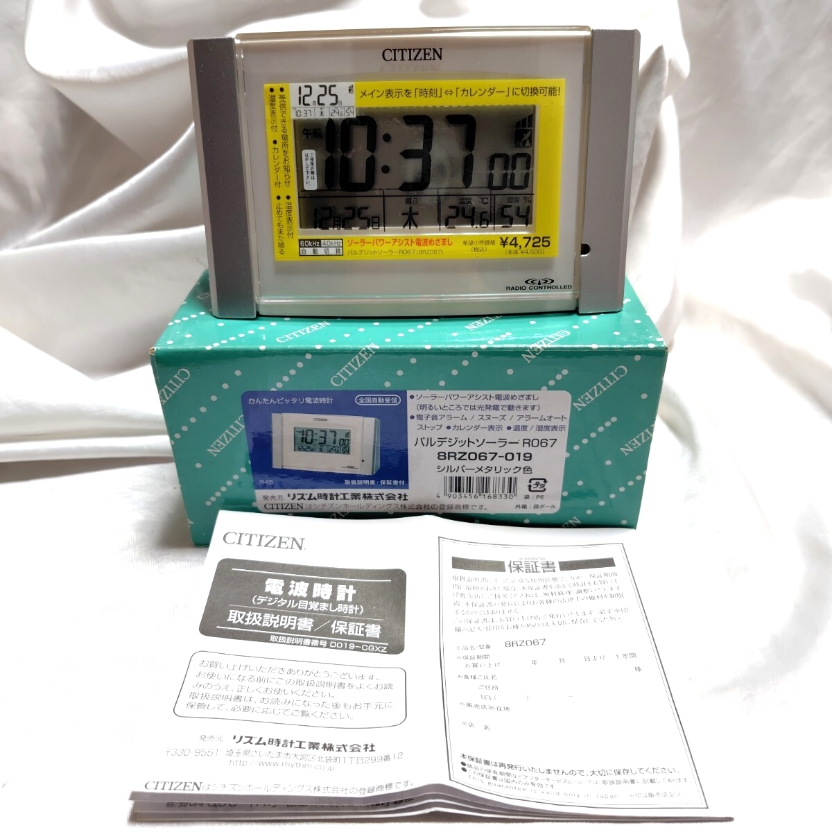 > 【未使用】リズム時計 パルデジットソーラー R067 8RZ067-019 シルバーメタリックCITIZEN 電波時計 ソーラーパワーアシスト電波めざまし