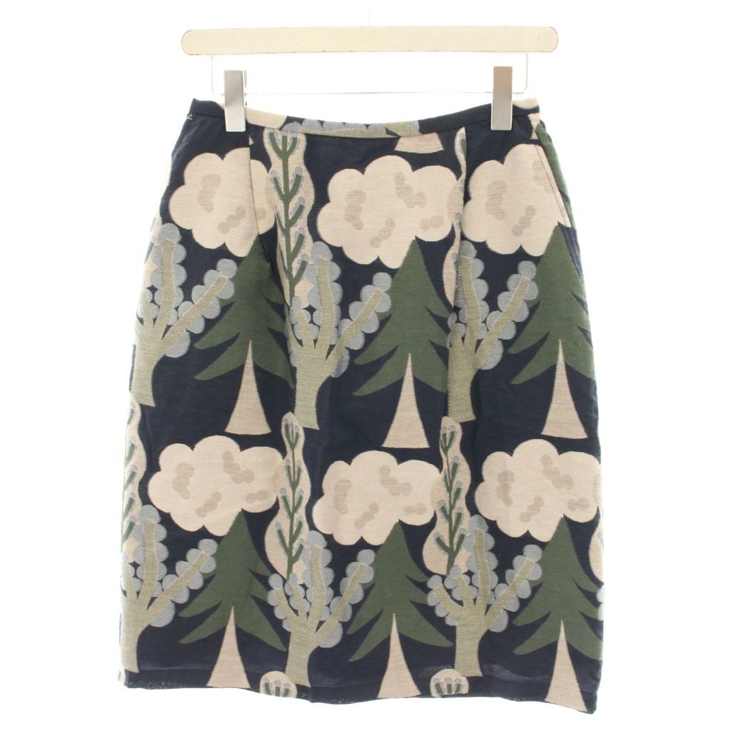 - サリースコット Sally Scott 森のスカート ひざ丈 タイト 総柄 9 64-91 紺 ネイビー ベージュ 緑 グリーン 57-21-8023 ■MU レディース
