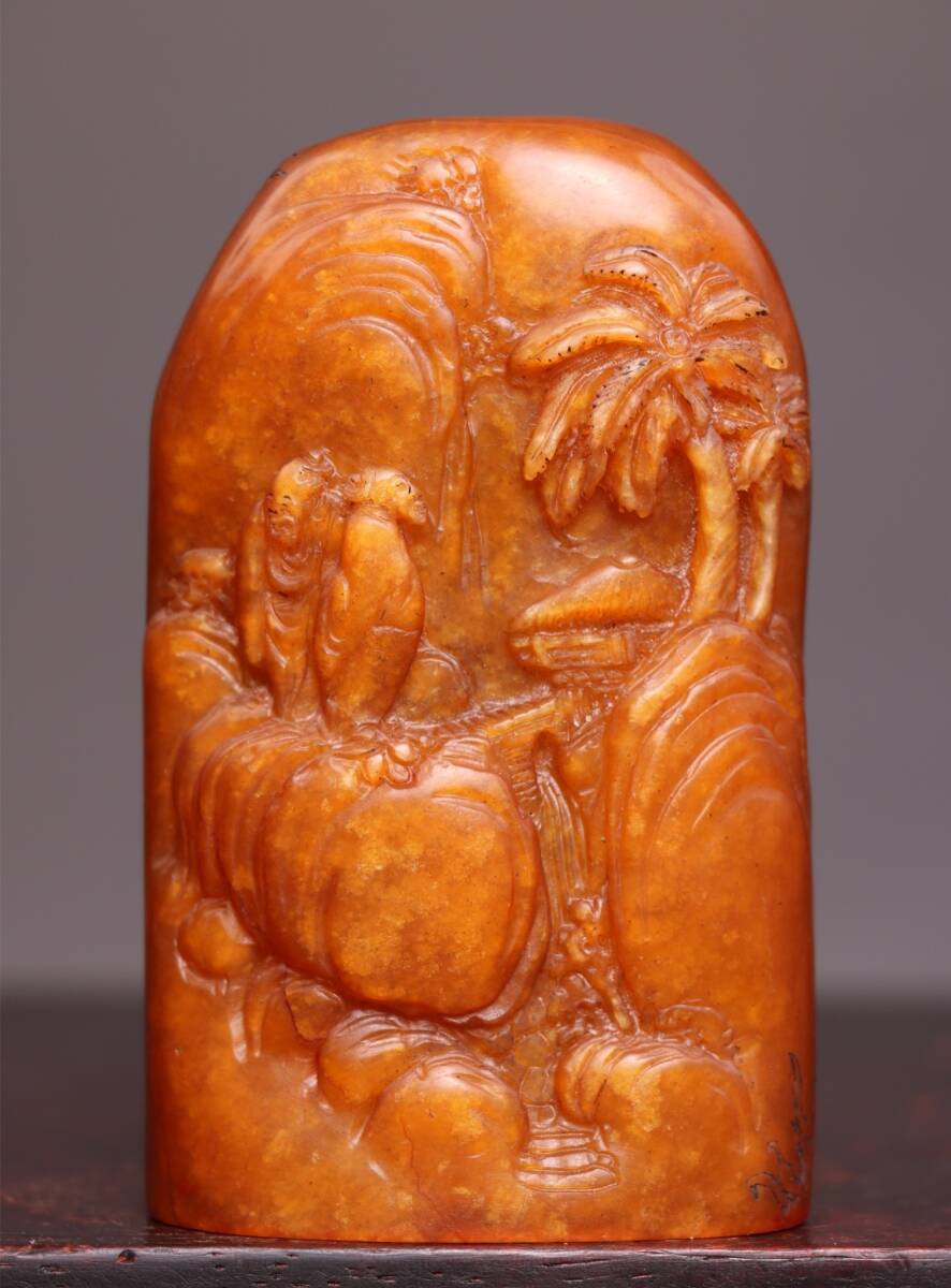 > 時代旧蔵 珍品田黄石 高浮き彫り薄意 老閑章置物 印章 時代古玉細密細工★古置物★古賞物★古擺件★蒐集家放出★唐物821