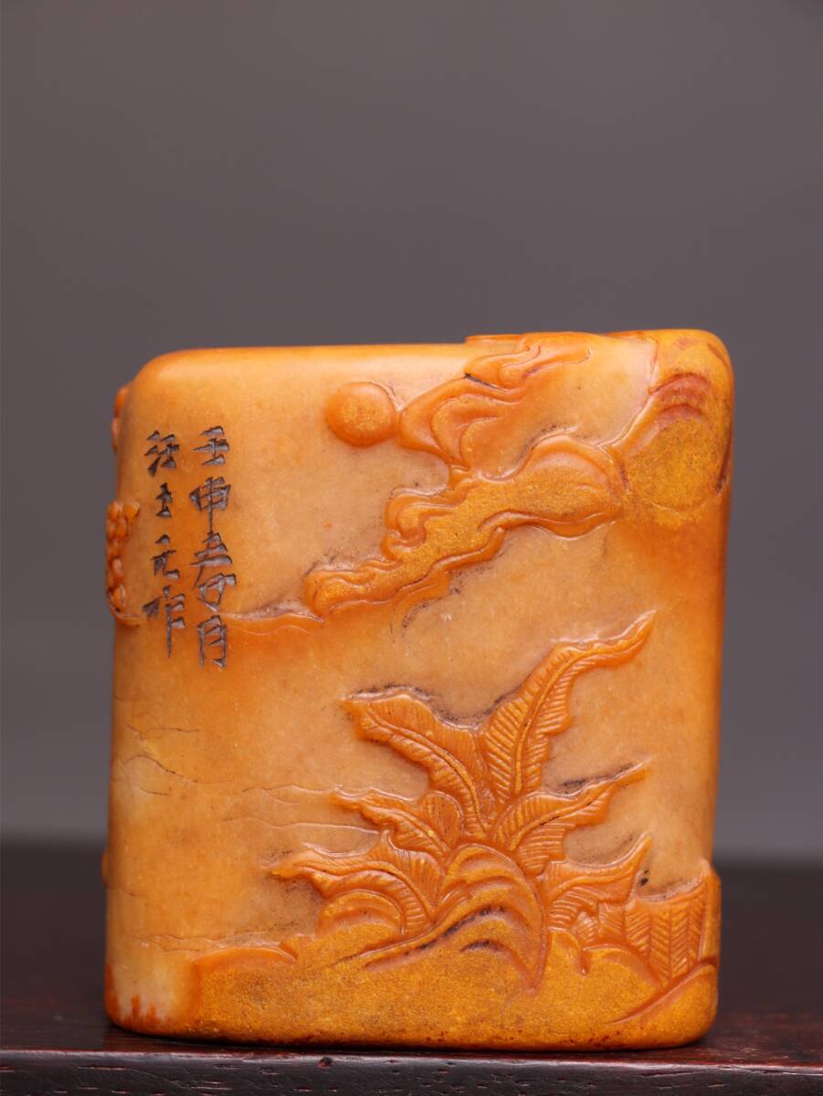 - 時代旧蔵 珍品田黄石 高浮き彫り薄意 老閑章置物 印章 時代古玉細密細工★古置物★古賞物★古擺件★蒐集家放出★唐物821