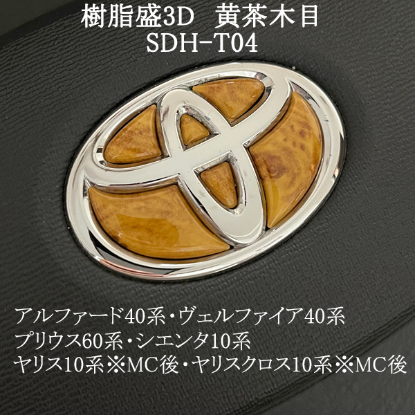 > トヨタ ステアリング エンブレムシート 黄茶木目 ウッド SDH-T04 ハンドル用 樹脂盛立体3Dシール ステッカー 取付け簡単 TOYOTA ZEROWIN