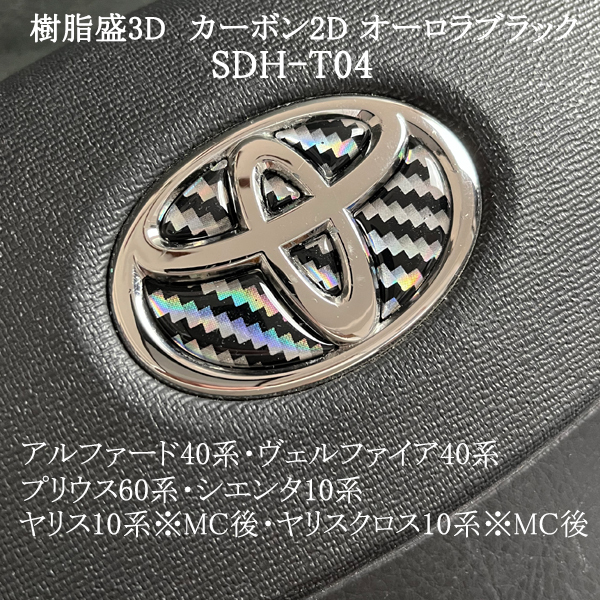 - トヨタ ステアリング エンブレムシート カーボン2Dオーロラブラック SDH-T04 ハンドル用 樹脂盛立体3Dシール ステッカー 取付け簡単 TOYOTA