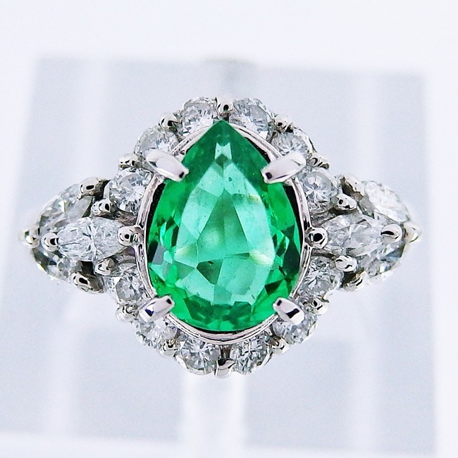 - Pt900 ★リング 指輪 エメラルド0.70ct 5月誕生石 ◇ダイヤモンド0.65ct●15号 ◆ソーティング付き【中古】 /mj311/24893/10001232