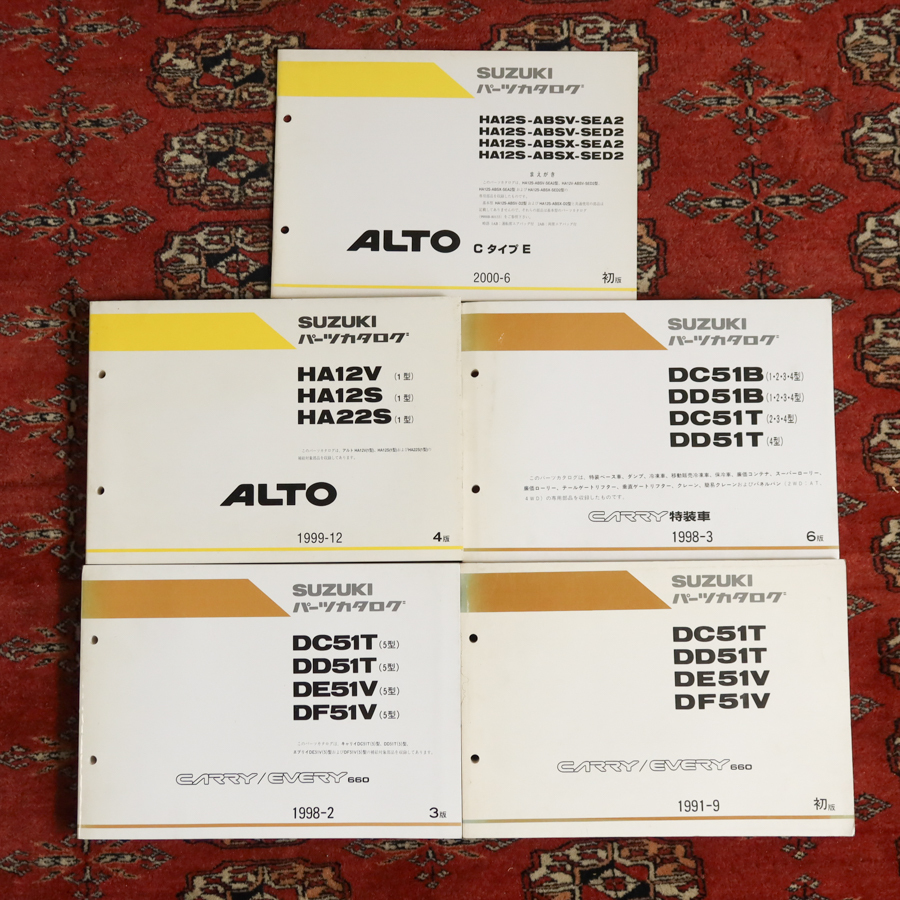 > スズキ 車 パーツカタログ 5冊 まとめて SUZUKI エブリイ キャリイ 他 検) 車 軽トラ ダンプ バン 商用車 整備書
