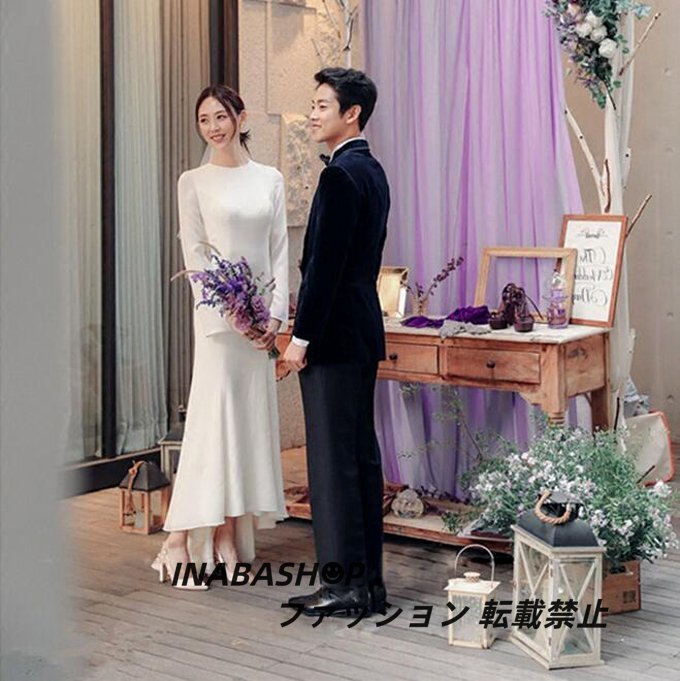 - 長袖 ウェディングドレス ウエディングドレス フィッシュテール ゆったりタイプマーメイド トレーンドレス レディースドレス 前撮り 後撮り