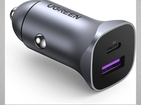 > UGREEN シガーソケット USB C 30W 2ポート 急速充電 PD3.0/QC3.0/SCP対応 12V/24V車全対応 シルバー 新品 超コンパクト タイプC 車 充電器