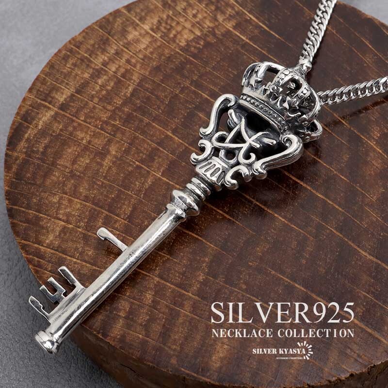 - (50cm) シルバー925 鍵ネックレス キーネックレス ダブル喜平チェーン カギ クラウン 王冠 メンズ 金属アレルギー対応