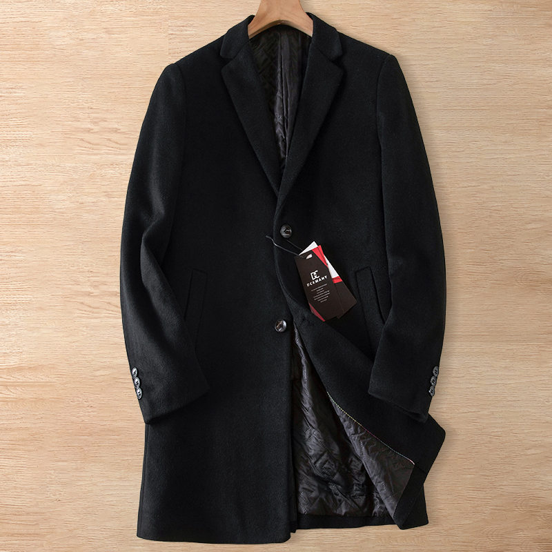 - Y682-L程度 ブラック 新品DCKMANY ウール混 テーラードコート チェスターコート ミドル 中綿 秋冬 防寒 フォーマル アウター メンズ