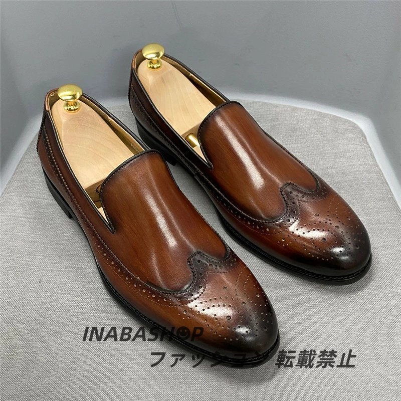 > ローファー 本革靴 ヴァンプローファー ウイングチップ ビジネスシューズ ドライビングシューズ ドレスシューズ 紳士靴 メンズ24.5cm-27cm