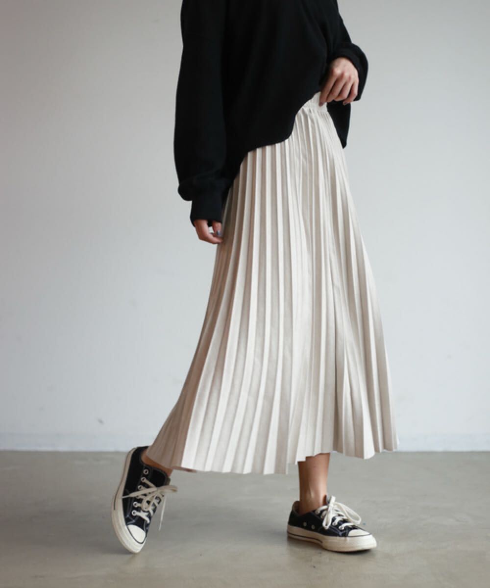 - Auntie Rosa Holiday スウェードプリーツスカート ゴムウエスト スエード プリーツスカート ロング丈 アンティローザホリデー アイボリー M