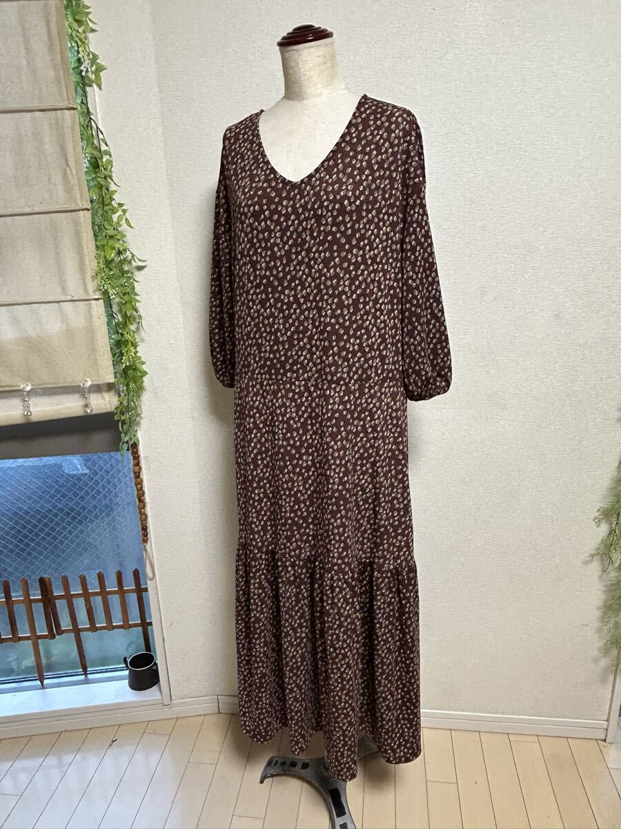 - 【 niko and...★ニコアンド】総柄・七分袖丈マキシワンピース・伸縮性・裏地無しサイズ4