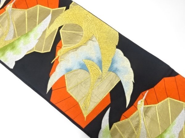 > ys7490765; 宗sou 地紙に鶴模様織り出し袋帯(材料)【アンティーク】【着】
