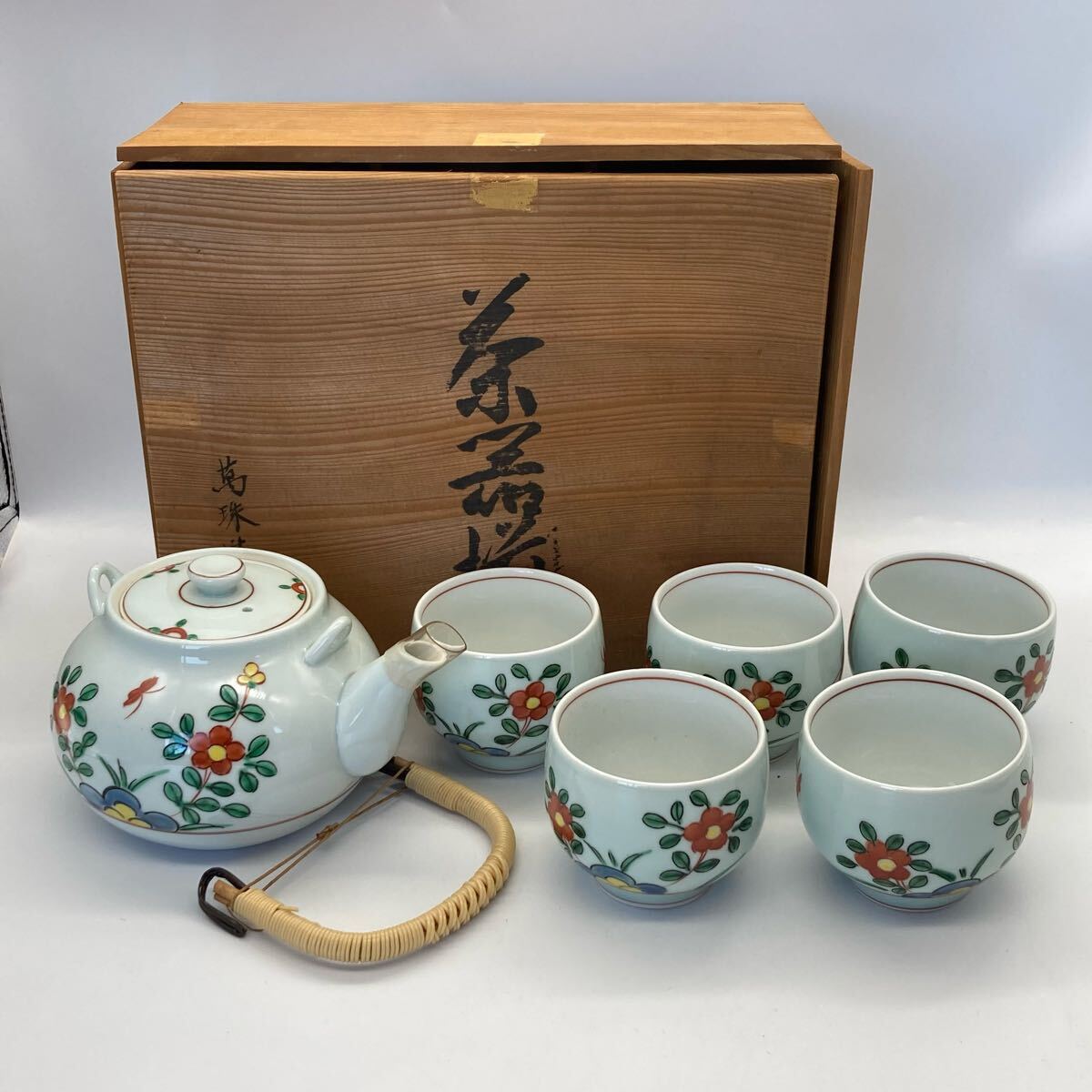 - M0823703B 茶器揃 茶器セット 萬珠造 湯呑 湯呑み茶碗 急須 萬珠堂 茶器 工芸品 煎茶道具 茶道具 当時物 中古品 現状品