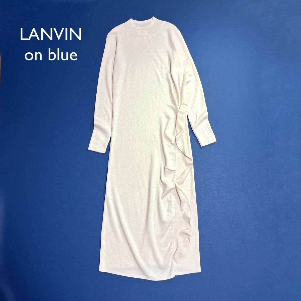 > ch28 LANVIN on blue サイドフリルニットワンピース ピンクベージュ ロングワンピース 薄手 定価26,400円