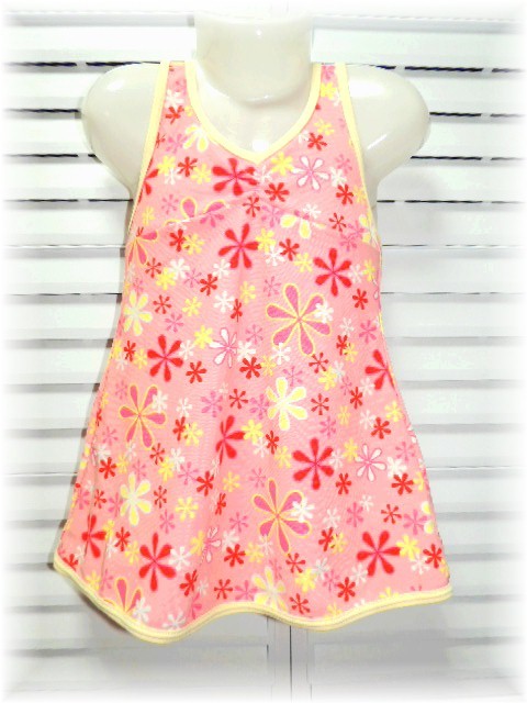 - 西松屋 リボン飾り ワンピース水着 120cm ピンク×イエローライン 花柄