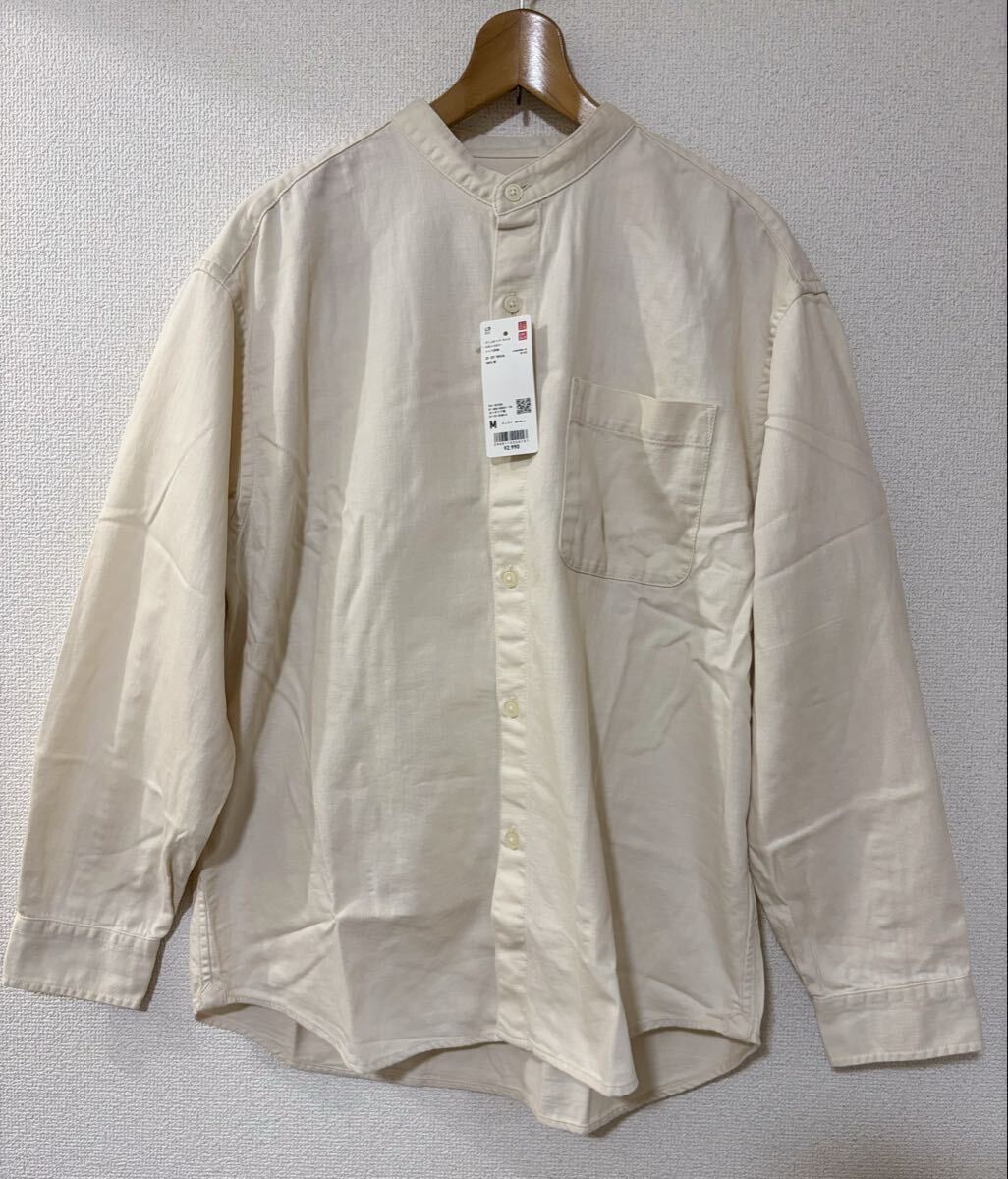 - ユニクロ UNIQLO デニム オーバーサイズ スタンドカラー シャツ WHITE オフホワイト 新品 未着 Mサイズ アイボリー 0824
