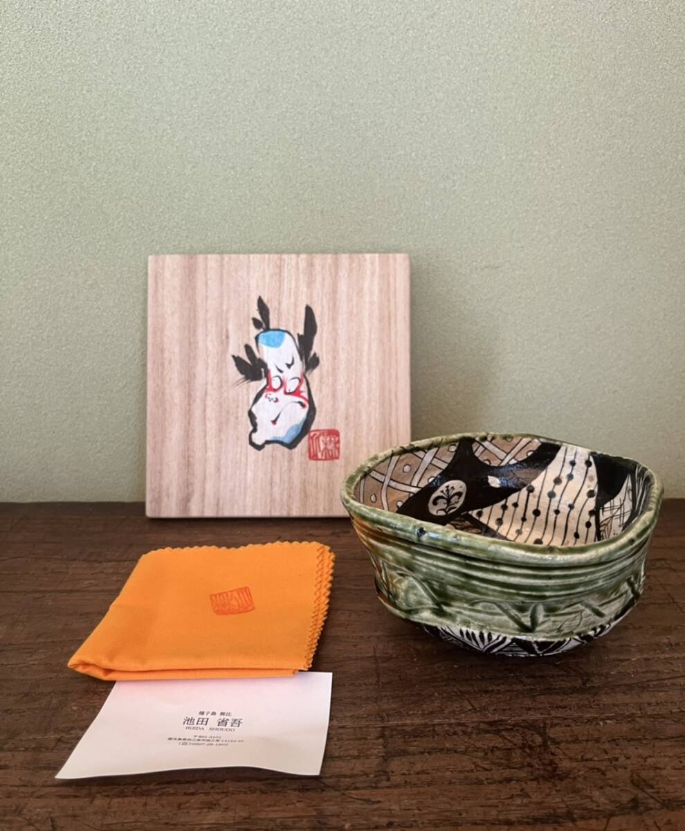 - 池田省吾 織部 役者絵 茶碗 人気陶芸作家 種子島 無比