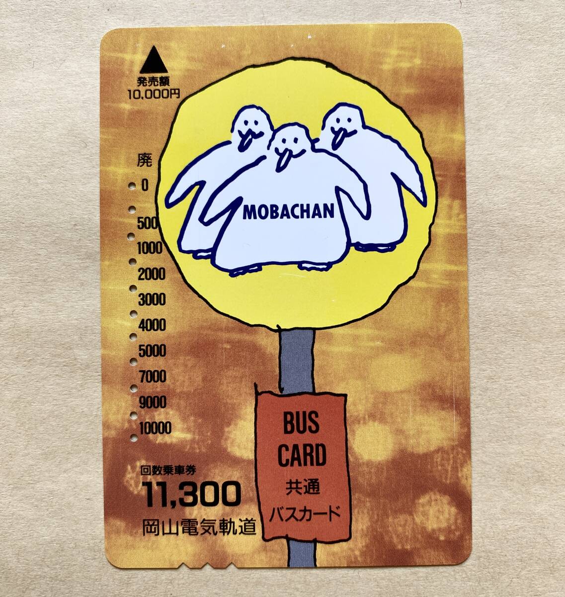 - 【使用済】 バスカード 岡山電気軌道 MOBACHAN イラスト
