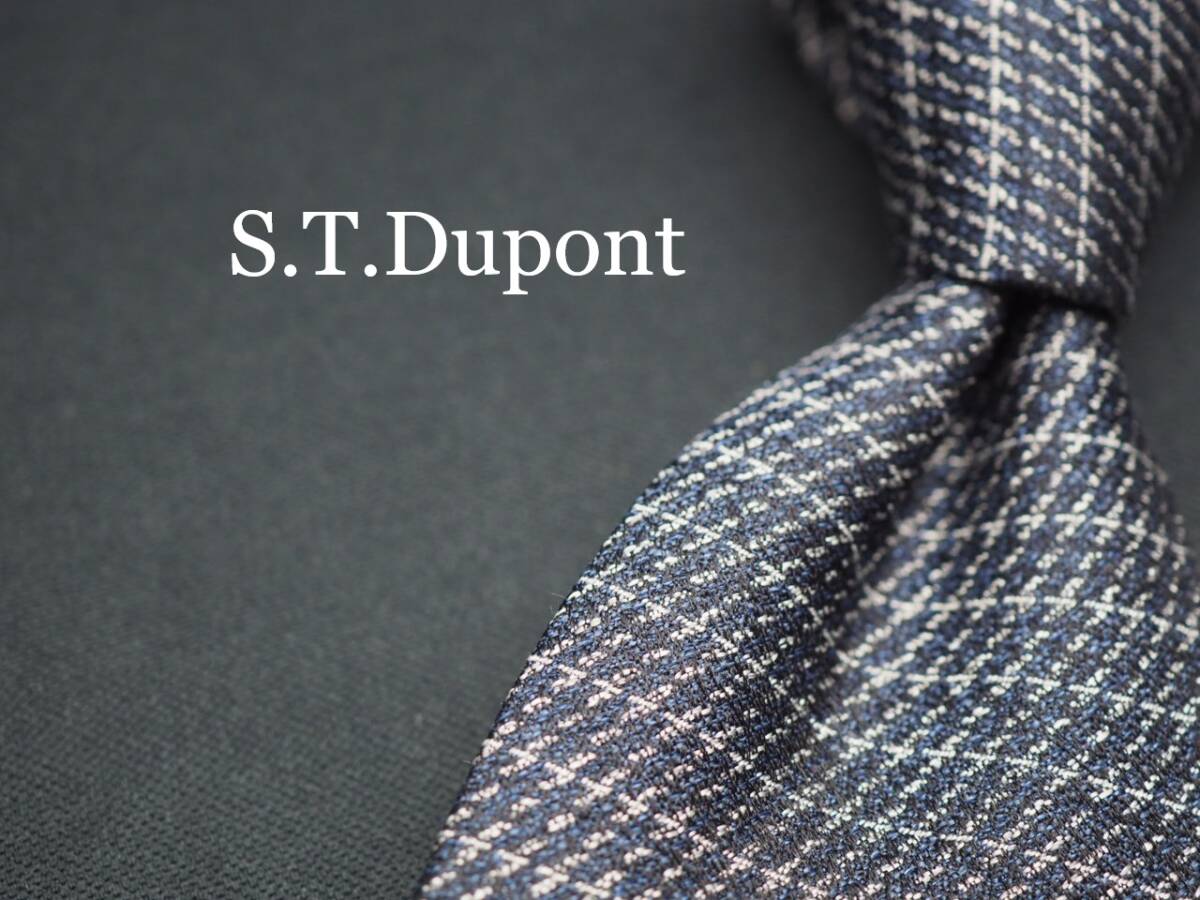 - 美品【S.T.Dupont デュポン】 F1626 グレーネイビー系 SILK ブランド ネクタイ 古着 良品