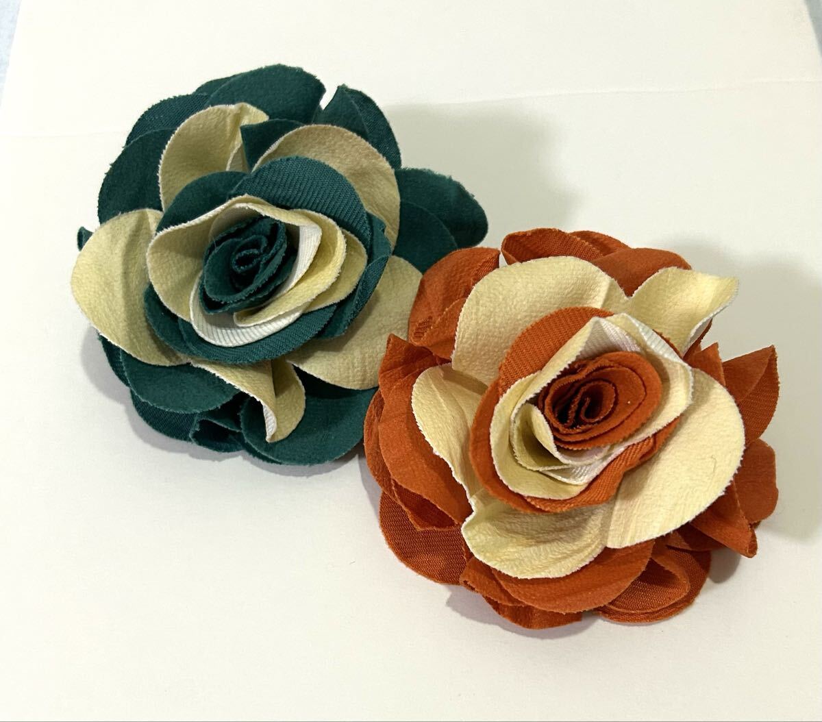 - フラワーコサージュ ブローチ クリップ グリーン オレンジ セット