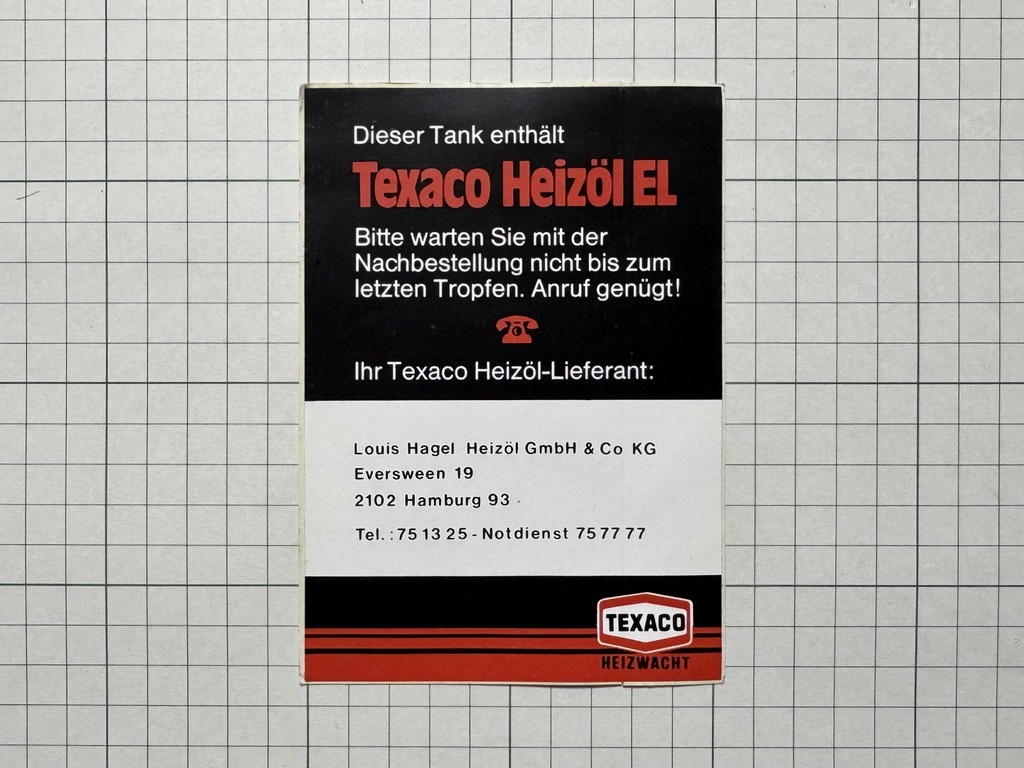 - TEXACO テキサコ 暖房用燃料オイル 広告 ステッカー 宣伝 +Gb