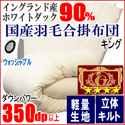 - 羽毛布団 キング 合掛布団 イングランド産ホワイトダック 90% ダウン エクセルゴールドラベル ウォッシャブル 軽量生地 日本製