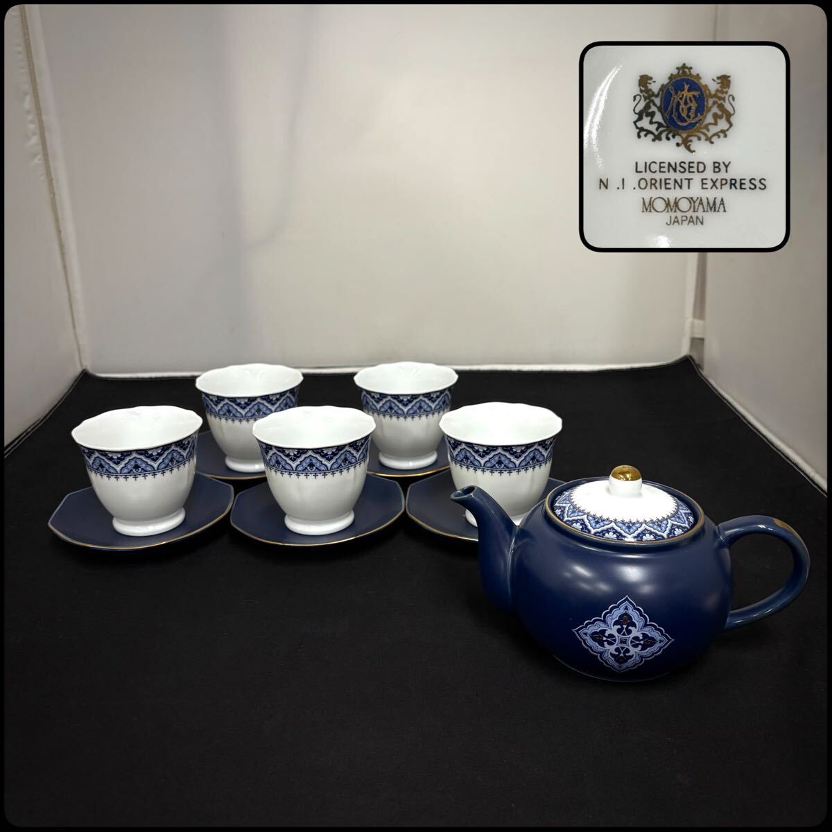 - 未使用 桃山陶器 N.I.ORIENT EXPRESS ティーセット 金彩 アラベスク柄 ティーポット カップ ソーサー 5客揃 洋食器 当時物 美品 (08257E