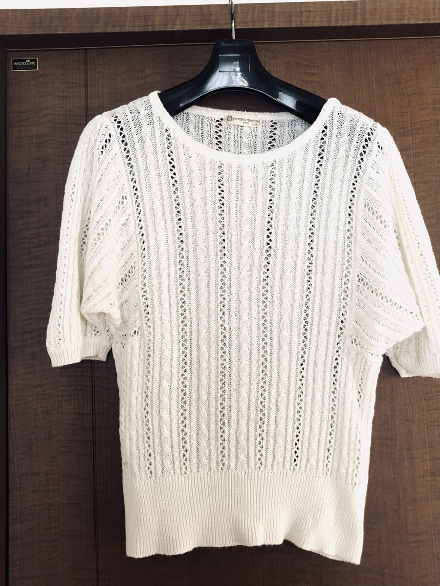 - Mサイズ 麻100% 半袖ニット オフホワイト