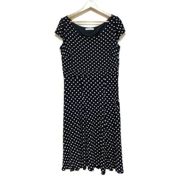 - ローラアシュレイ LAURAASHLEY - 黒×アイボリー レディース クルーネック/半袖/ロング/ドット柄 ワンピース