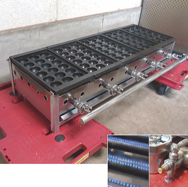 - ★中古 業務用 LPガス用 5面5連 90穴 鉄板 たこ焼き機 タコヤキ たこやき 直径45mm 大玉ジャンボ 現状品 傷汚焦有 ガス管メンテ済 店舗用