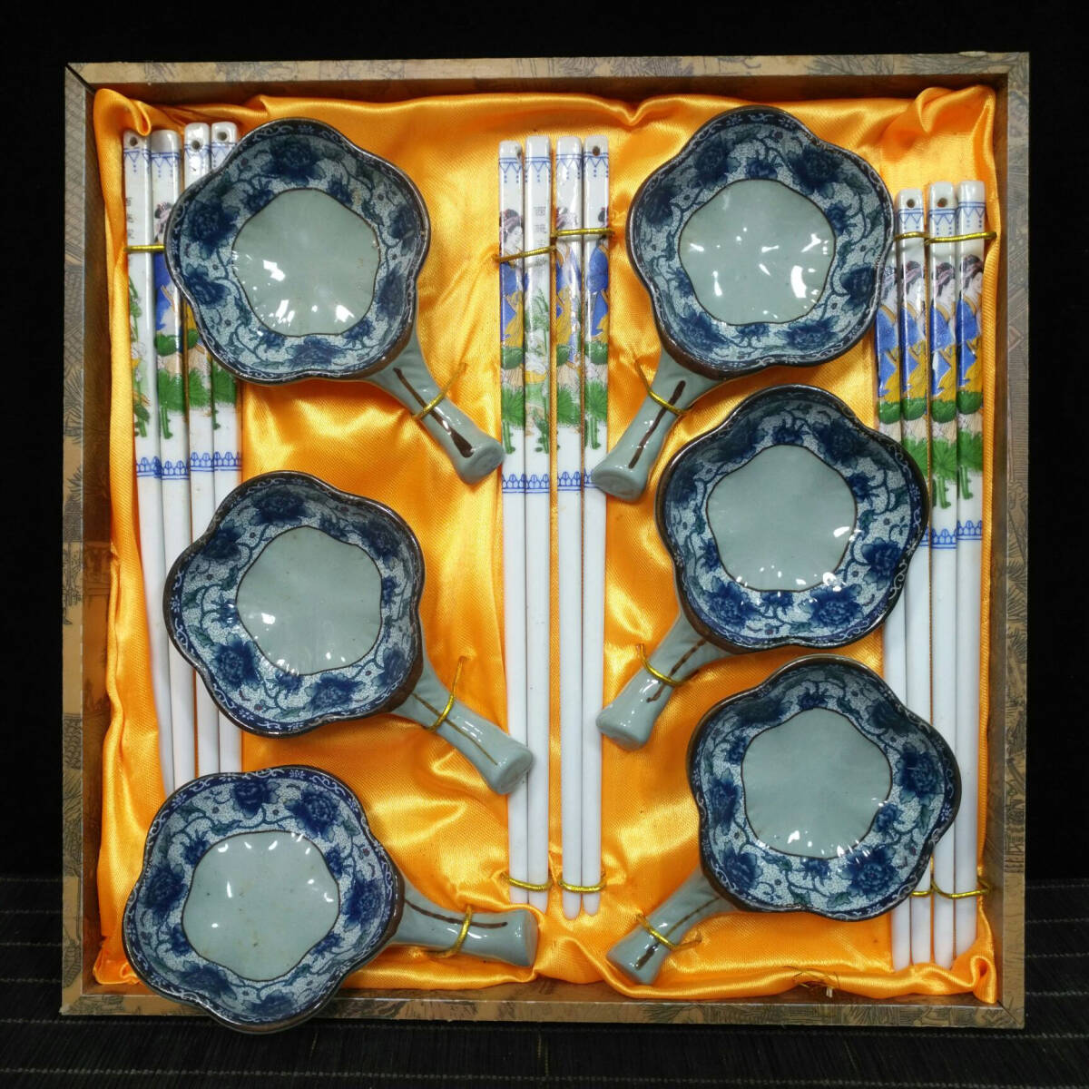 > 8+GV7383「東洋美術」 中国骨董 人間国宝 磁器製品【6点の皿と箸のセット】 旧物 孤品 珍品 陶磁器 収蔵価値が高い
