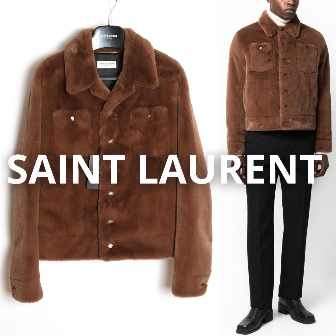 > SAINT LAURENT PARIS 新品 国内正規品 フェイクファージャケット 42 ラビットファー調 ムートンジャケット調 FENDI/VERSUS VERSACE関連