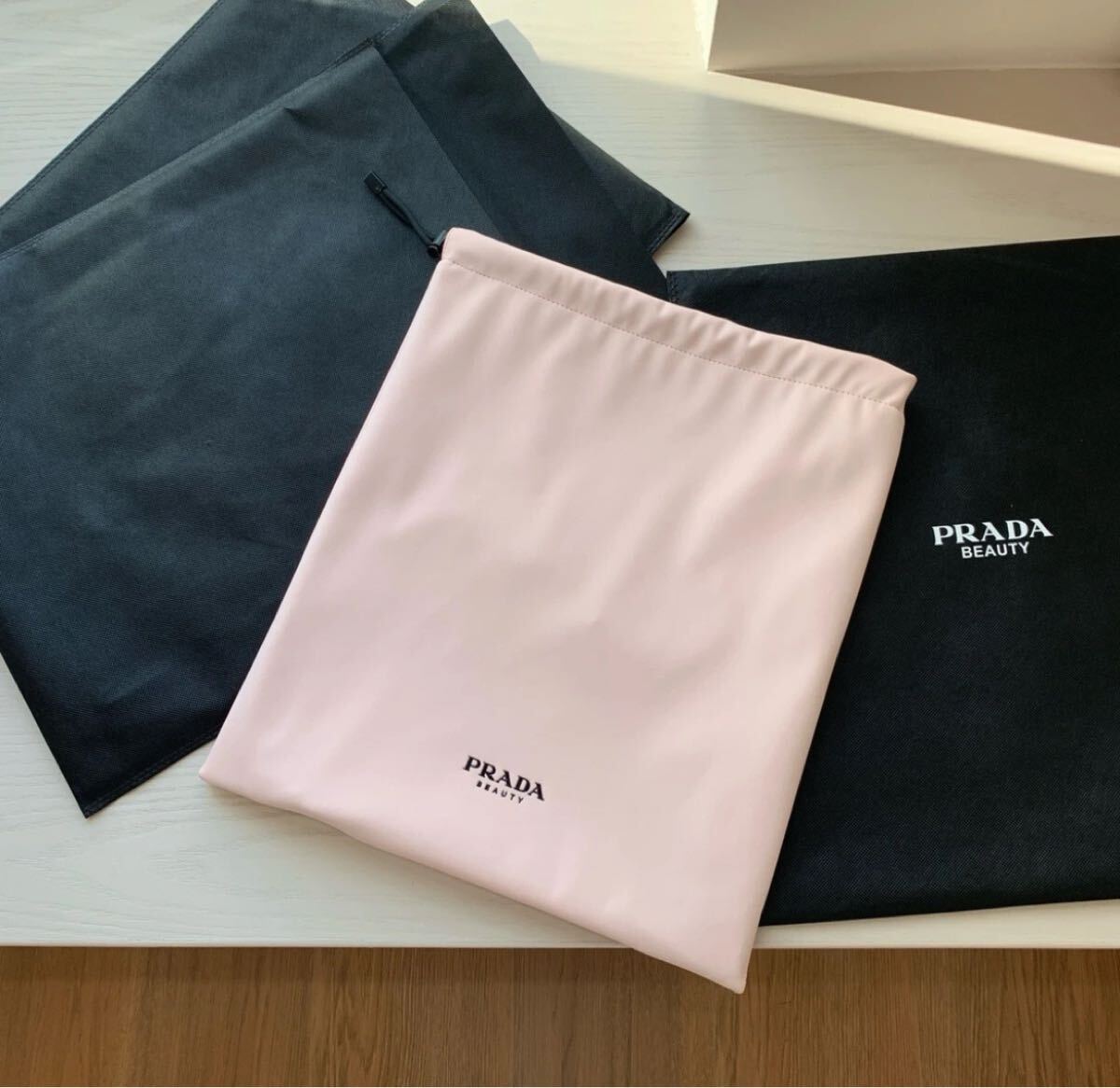 - 新品 未使用 PRADA BEAUTE ファン限定 ブラック リバーシブル 巾着型ショッピングバッグ(香水購入時の特典品)BIG size ノベルティー