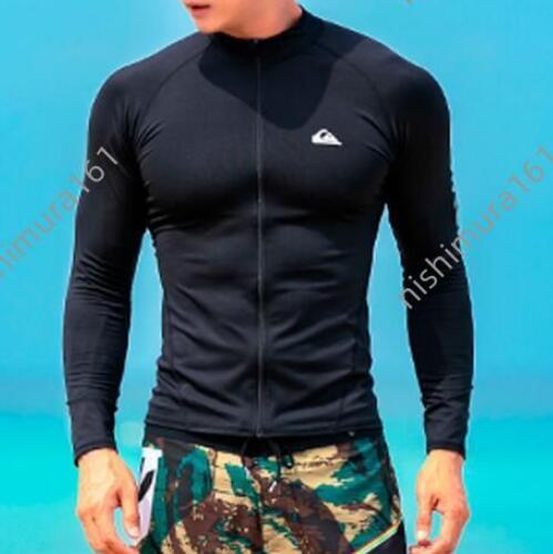 > XLサイズ新品●メンズ ラッシュガード●前開き ラッシュガード ブラック●長袖フルジップサーフィンウエア●タイムセール