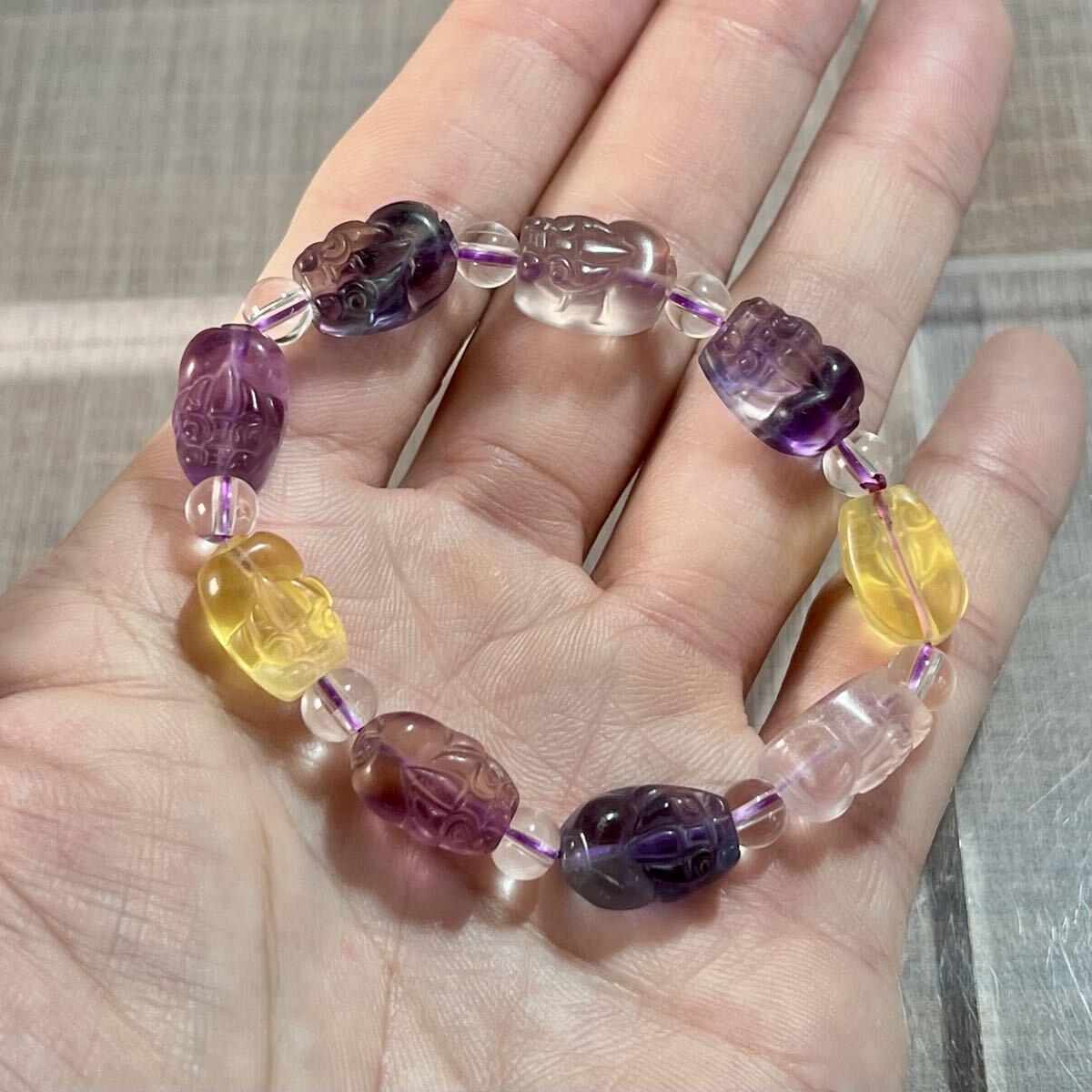 - 高品質 貔貅付きマルチカラーフローライトブレスレット 2-5 パワーストーン