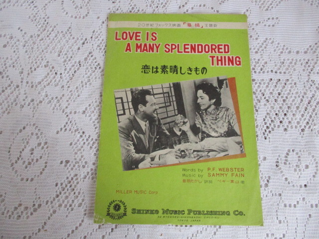- 楽譜 20世紀フォックス映画「慕情」主題歌 恋は素晴らしきもの 音羽たかし・訳詞