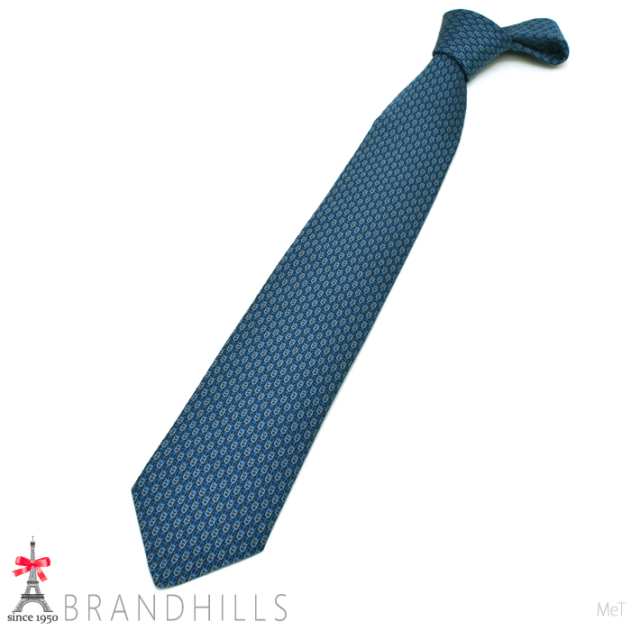 - エルメス ネクタイ エジーヌ シルク100% マリン アズール ブラン シェーヌダンクル 剣先幅8cm 655820T HERMES 未使用品