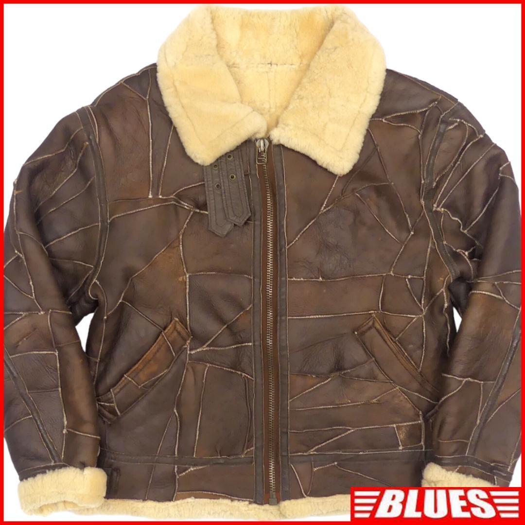 - 即決★N.B.★メンズL位 フライトジャケットB-3 茶 本革 ボマージャケット 本皮 レザー 毛皮 シープスキン パッチワーク