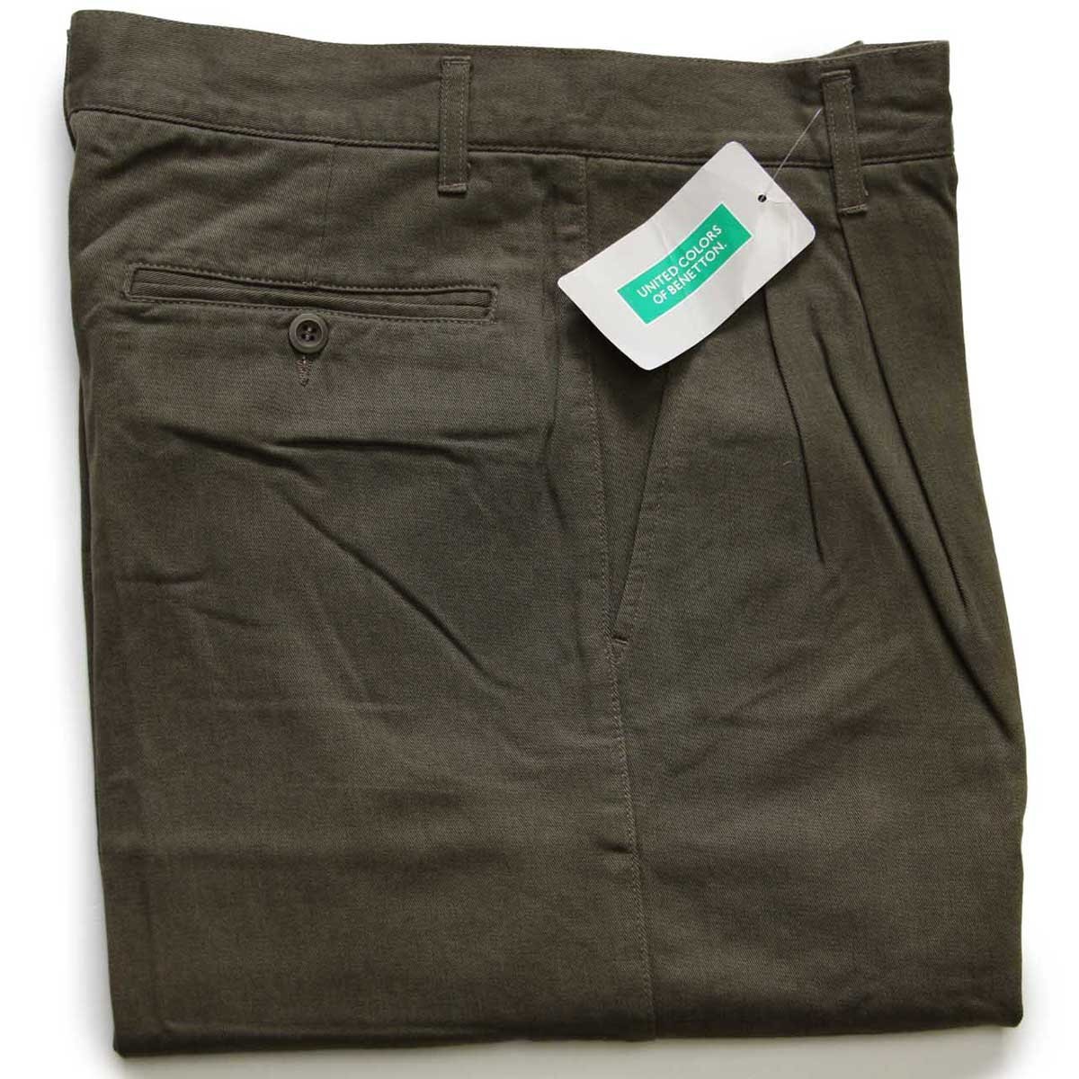 > デッドストック★90s イタリア製 BENETTONベネトン ツータック スラックス コットンツイル パンツ オリーブ 46★B オールド ユーロ