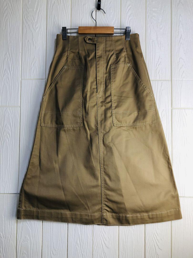 - アースミュージック&エコロジー ベージュ ひざ丈スカート ポケット付き F