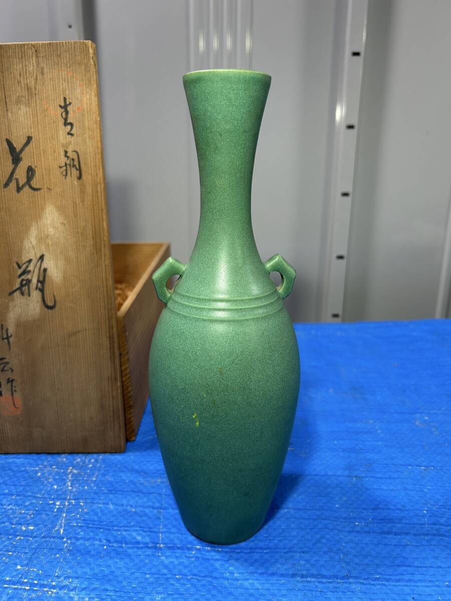 - 【希少価値品 書道先生放出品】花瓶 青銅釉 花入 花器 花生 昭和レトロ 壺 花入 生け花