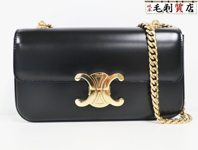 - セリーヌ CELINE チェーン ショルダーバッグ クロード 115203BF4.38NO シャイニーカーフスキン ブラック 極上美品 【中古】