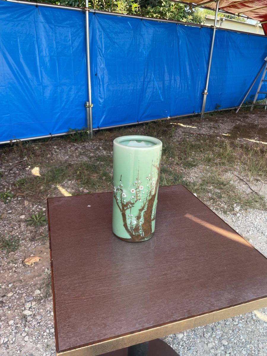 - 花入れ 花瓶 陶器 置物 緑色の陶器製花瓶 花と枝のデザイン