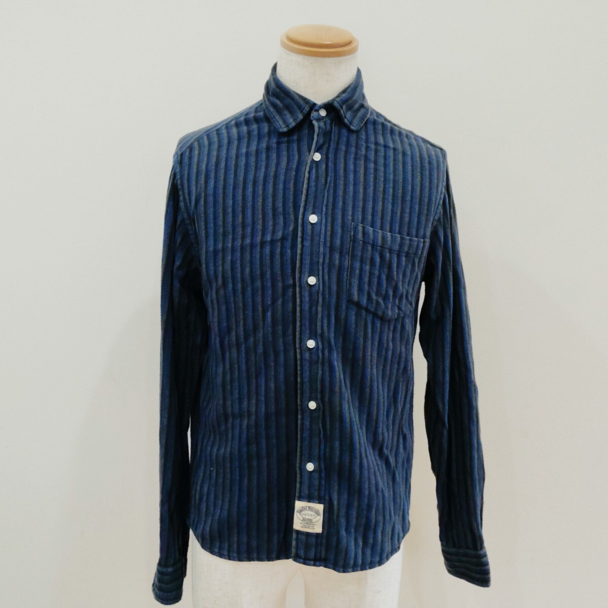 - HIGH! STANDARD ストライプシャツ 長袖シャツ 綿100% 青 ブルー メンズ 服