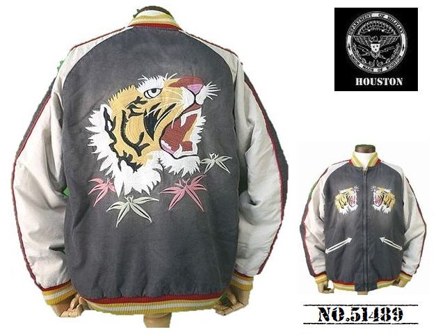 - 【送料無料 48%OFF】HOUSTON ヒューストン インディゴ スカジャン SOUVENIR JACKET 「TIGER」 NO.51489 BLACK_Lサイズ (汚れ特価)